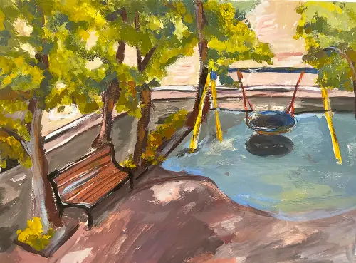Каждый уголок твоего двора продуман до мелочей: старый кирпичный забор, увитый плющом, керамические горшки с геранью на подоконниках, дорожка, выложенная плиткой с узорами. Даже ржавая лейка у клумбы кажется частью художественной композиции. Здесь хочется творить — рисовать, писать стихи или просто мечтать, глядя на игру света и тени.