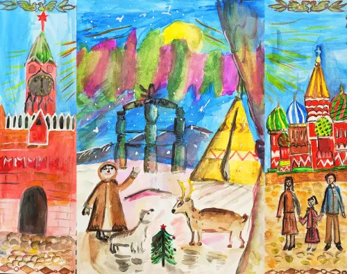 От Москвы до самых до окраин. Все любят нашу прекрасную столицу. Её красотой нельзя не восхищаться. Меня переполняет чувство гордости за нашу страну. Что я попыталась выразить в своей работе.