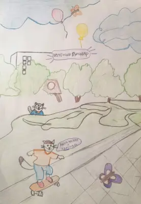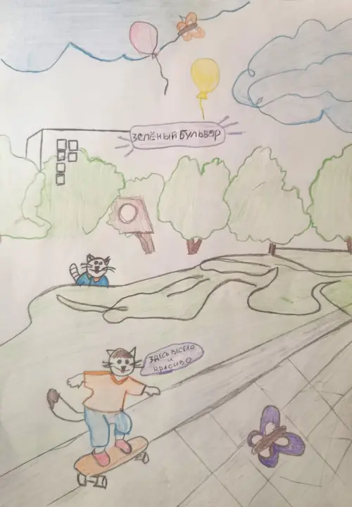 С мамой и папой часто гуляем по Зеленому бульвару и мне там очень нравится. Там гуляет много детей и мне с ними всегда весело играть. А ещё у меня есть любимый кот и я решил его нарисовать.