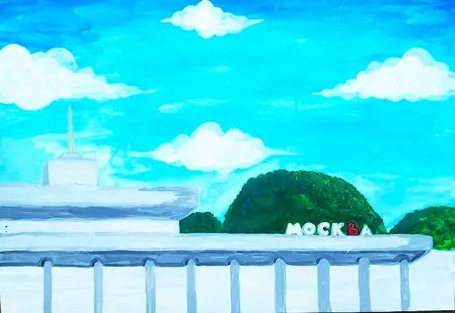 Формат А3, гуашь Южный речной вокзал — один из двух пассажирских речных вокзалов Москвы. Расположен в Южном административном округе в районе Нагатинского Затона на левом берегу Нагатинской поймы, в месте спрямления русла Москвы-реки.