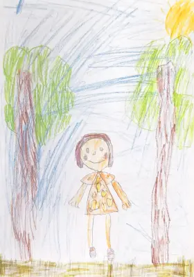 Рисунок наполнен светом и радостью, словно каждый элемент двора говорит о счастье и беззаботности детства. Этот рисунок — настоящий гимн детскому счастью и беззаботности, который вызывает улыбку и тёплые чувства.