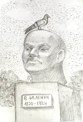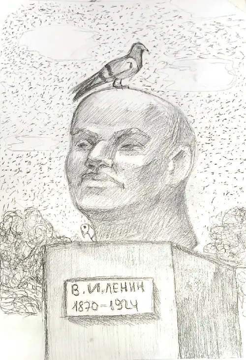 Работа формата а3, карандаш. Участница ведущего творческого коллектива города Москвы. Художественная студия "СтАрт". Местный житель. Проект про памятники и птиц.