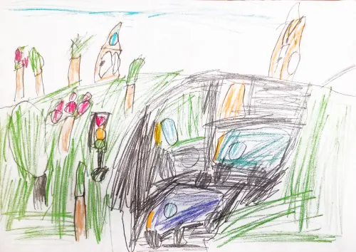 Этот рисунок приглашает всех посетить изображённый двор, словно говоря: «Посмотрите, как здесь красиво и весело! Приезжайте к нам!» Он отражает атмосферу домашнего уюта и детского счастья, которая может стать символом для многих людей.