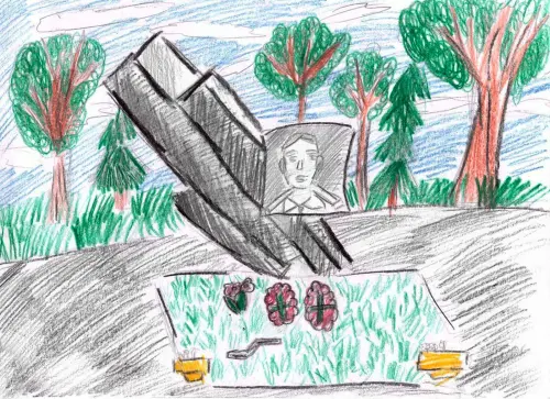 Ребёнок искусно использует мягкие линии и плавные переходы цветов, что придаёт работе живость и динамичность. В каждом элементе прослеживается внимание к деталям, что свидетельствует о стремлении передать свою точку зрения на важный аспект истории. Использование цветных карандашей позволяет создать текстуру, придающую объём и объёмное восприятие изображения, а разнообразие цветовых тонов делает работу привлекательной и выразительной.