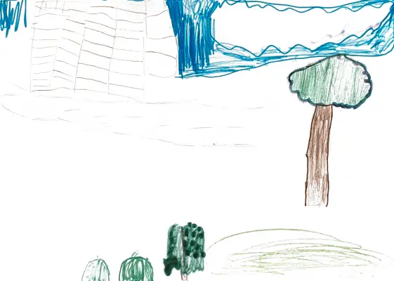 Наш малыш очень старался, но рисовал сам, в библиотеке! На работе изображены предметы рядом с домом, там, где Тимофей гуляет каждый день со своей мамой. Не судите строго. Главное - не победа, а участие!