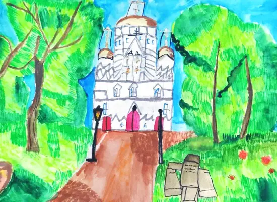 Это православный храм в районе Нагатинский Затон, расположенный на территории музея-заповедника «Коломенское». Относится к Даниловскому благочинию Московской епархии Русской православной церкви. Формат А3, акварель, маркеры.