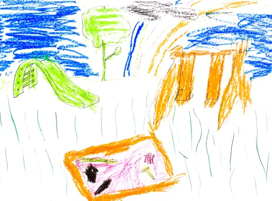Вика очень любит гулять после сада на площадке за домом. Там у нее много подружек. Они катаются на качелях, прячутся от взрослых в горке, у нас горка как труба, и вообще у нас очень дружный двор.