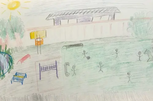 Я живу в чудесном дворе. На его территории есть качели, карусели, разные спортивные тренажеры и даже волейбольная площадка. Я люблю гулять во дворе, особенно летом, да и зимой тоже.