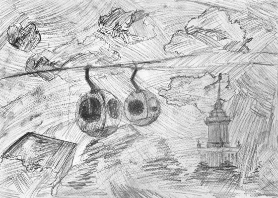 Я живу в замечательном городе Москве и часто гуляю с родителями на ВДНХ. Мне нравится, как выглядит канатная дорога, с неё видно почти каждое здание на ВДНХ.