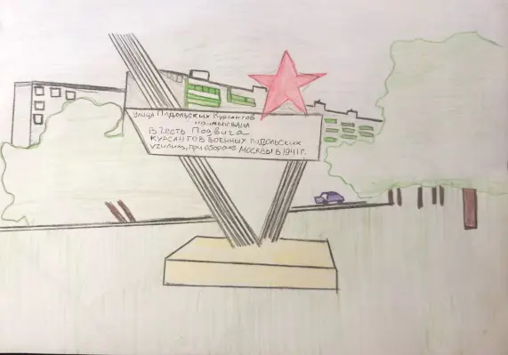 В моём любимом районе установлен очень красивый памятник в честь Подвига Подольских курсантов при обороне Москвы в 1941 году. Я считаю, что это очень хорошо, что таким образом увековечен подвиг наших защитников Отечества.