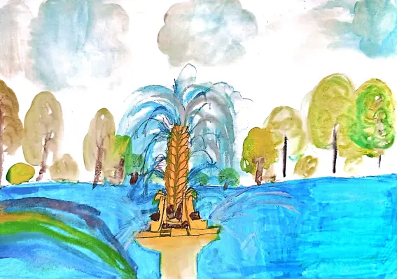 Я нарисовал фонтан «Золотой колос». Он находится на ВДНХ, он очень красивый, притягивает внимание. Его высота достигает целых 16 метров, а в основании - 3 рога изобилия.