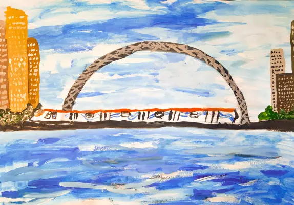 Мне очень нравится московское метро. Оно радушное, отзывчивое, всегда улыбчивое, чистое, красивое. Метрополитен Москвы - средоточие прошлого и будущего, мистических фантазий и прагматических инженерных решений! Мне кажется, нигде в мире нет такой транспортной жемчужины, искрящейся, манящей, завораживающей, скоростной! Это настоящий лабиринт под-, на- и надземный! Порой чудится, что ты летишь над Москвой! Я проживаю в динамично развивающемся районе Филëвский парк. Филёвский метромост связывает ЦАО и ЗАО, и я люблю наблюдать из мчащегося вагона, как наряжаются набережные, возводятся новые стройные дома, бегут по реке речные трамвайчики. Именно поэтому на рисунке изображён этот удивительный участок московского метрополитена. Наше метро ежедневно говорит нам, что из любого лабиринта есть выход! Да ещё какой!!!