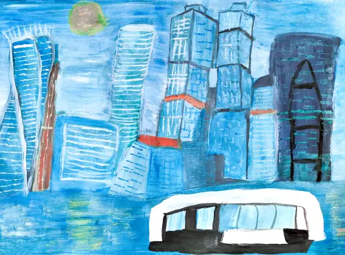 Я нарисовал свой любимый город. Лучший город в мире. Я горжусь тем, что живу в Москве. Люблю тихие улицы и большие проспекты, Москву-реку, прогулки по набережной.