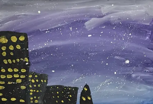 Представьте себе: зимний вечер, пурга, я с бабушкой иду вечером после тренировки по каратэ. Метёт метель, я укрываюсь рукой от снега. Окна домов горят светом. А дома ждет вкусный ужин и горячий чай.