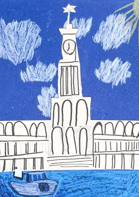 На работе изображено здание речного вокзала, работа выполнена с натуры на пленэре. Вместе с юными исследователями отправились на Северный Речной Вокзал! Этот волшебный "корабль на берегу" покорил наши сердца! Мы разгадывали секреты архитектуры, представляли себя капитанами дальнего плавания и узнавали, куда же можно отправиться отсюда на теплоходе! А вы знали, что здание вокзала и правда похоже на огромный корабль? Ребята сразу это заметили!