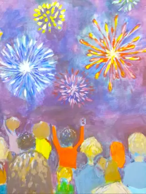 Как красиво в праздничной Москве . С приходом праздника Москва преображается. Украшаются улицы, большие парки, разные стенды напоминают о предстоящем празднике. Но самое яркое действие происходит на красивой Красной площади, где собираются люди,чтобы посмотреть яркий, красочный салют. Ура !