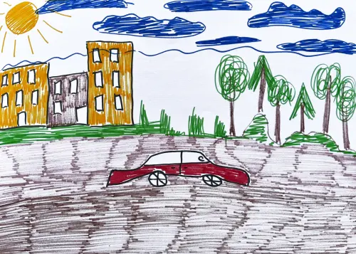 Я люблю кататься на машине по нашему красивому району. У меня красная и быстрая машина. Мы с мамой, папой и братиком часто ездим гулять на ней в парк.
