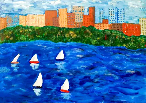 Это место олицетворяет наш лучший район Москвы. Если другим жителям необходимо ездить на море, то жители Строгино имеют свой уголок морского рая в Москве. Мы не только здесь купаемся, но и занимаемся всеми видами морского спорта, начиная от сапов заканчивая катамаранами. Это первое место, где я научился плавать. А ещё в нашем морском раю живут утки, бобры выдра и, не поверите, даже красноухая черепаха. Я её даже сфотографировал. У нас теперь поселились в воде, помимо кувшинок, настоящие белые лотосы. И мы - жители нашего района - наслаждаемся этой природой. И к нам приезжают полюбоваться парусами, которые густо населяют весь наш залив. А зимой здесь много рыбаков, они сидят до глубокой весны. Вот в каком раю я живу.