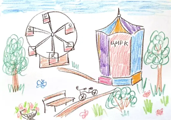 Представляете, сегодня утром на моей улице города я увидела огромные, яркие шатры! Сразу стало понятно - приехал цирк! В воздухе витает запах попкорна и сладкой ваты, слышны весёлые голоса и музыка.