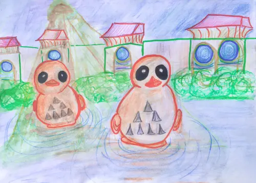 Гигантские оранжевые утки величественно плавают в водах затона под стенами парка аттракционов «Остров Мечты». Уточек видят издалека все жители и гости района «Южнопортовый». Большому парку - большие утки!