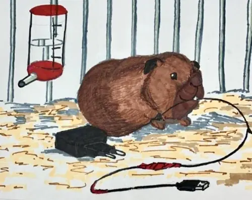 Я нарисовала коренную жительницу района Фили-Давыдково. Мы вместе с моей морской свинкой живём в одном городе, районе, доме, квартире, семье и даже комнате!!!