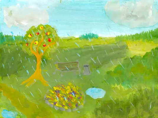 Меня зовут Елизавета, я живу с мамой, папой, старшим братом Егором! У нас есть песик по кличке Рич, и я с ним гуляю. Особенно мне нравится наш яблоневый сад, там очень красиво!