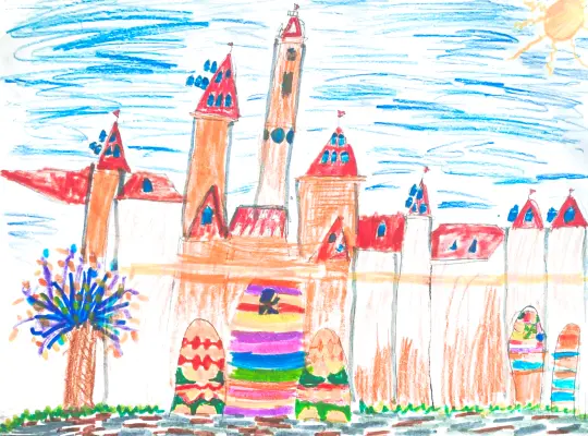 На мой день рождения мама мне сделала подарок в виде похода в "Остров мечты", мне все очень понравилось, я каталась почти на всех аттракционах, виртуально побыла поваром. Мне все очень понравилось, и я захотела нарисовать этот остров, где сбываются мечты.
