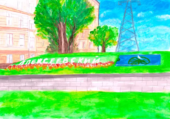 На этой картине изображен мой любимый и родной район, в котором я очень люблю гулять со своими друзьями! Мой район славится своей красивой природой. Здесь много парков и скверов, где можно прогуляться и насладиться свежим воздухом. Я люблю гулять по аллеям, наслаждаясь запахом цветов и пением птиц.
