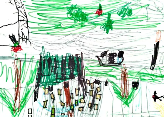 Это не просто площадка — это целая вселенная приключений! Здесь горки сверкают, как ракеты, качели взлетают до самых облаков, а песочница превращается в волшебный остров. Каждый цвет на рисунке кричит: "Давай играть!" — потому что для ребенка нет ничего важнее счастья здесь и сейчас.