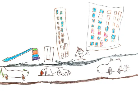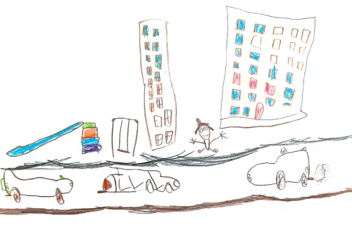 Этот рисунок символизирует детсво и привязанность к месту, где ребёнок провёл много времени. Двор на рисунке — это место для игр и общения с друзьями, где можно весело проводить время и познавать мир.