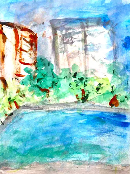 Это пруд рядом с домом возле которого мы любим гулять. Вокруг много зелени и очень красиво, на пруду живут утки в домиках на воде, рядом стоят новые красивые дома.