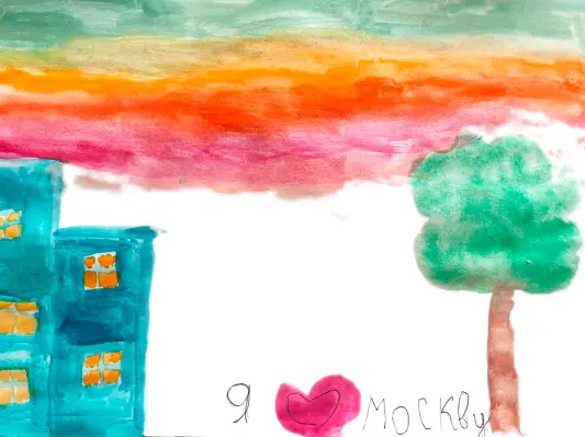 Я люблю Москву. На рисунке изображен любимый двор в районе Черемушки на улице Архитектора Власова.