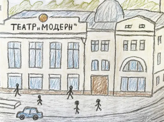 Я нарисовала его, потому что он красивый и в нём бывают интересные спектакли. У него большие окна и старинная крыша, а ещё рядом растут деревья. Там весело и интересно, и когда я туда прихожу, я чувствую себя как в сказке! Я люблю рисовать, и этот театр мне очень нравится, потому что он особенный.