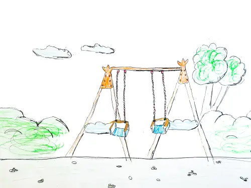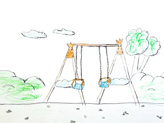 В моем дворе мне больше всего нравится детская площадка, а в особенности - качели. Там часто качается моя младшая сестра, да и я иногда тоже люблю немного покачаться