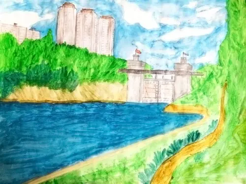 Когда мы едем с папой и мамой по мосту, то видим этот красивый шлюз. Благодаря этому шлюзу я увидел и узнал, как вода поднимается и опускается и как через шлюз проходят корабли.