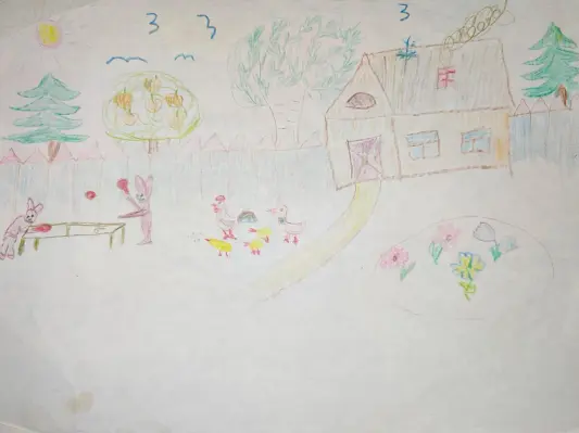 Я очень люблю свой двор и своих питомцев. У меня дома живет кролик, и я беру его в свой двор на детскую площадку гулять вместе со мной. Он белый и пушистый.