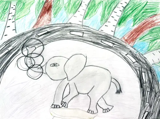 Недалеко от моего дома есть чудесный детский парк «Фили». Все дети в округе любят там гулять. На главной аллее парка есть памятник «Слон и дети». Мне очень нравится этот слон, его всегда хочется погладить. Он напоминает о цирке, куда мы ходим всей семьей. Я очень люблю животных, поэтому нарисовала этого слона.