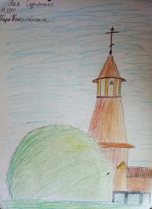 На рисунке изображена церковь Георгия Победоносца в парке Коломенское.