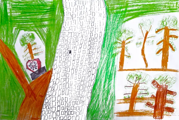 На рисунке я хотел изобразить свой любимый парк подле дома, там я провел не один день, и каждый раз нахожу там что-то новое, он огромный, и мне там очень нравится гулять.