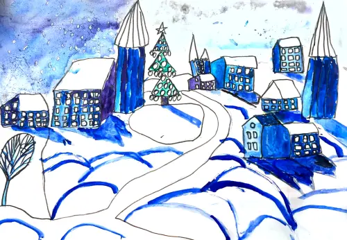На рисунке я изобразила зиму в Москве. Это волшебное время года - время новогодних праздников, подарков, чудес. !