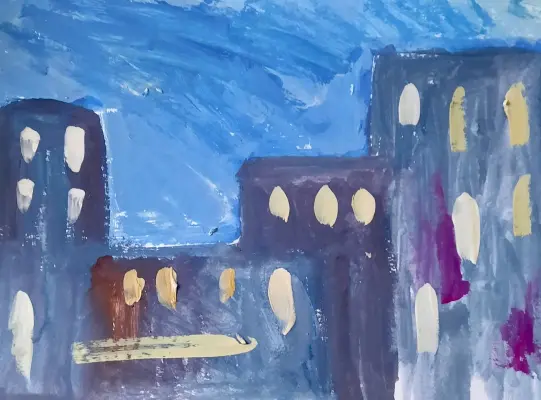 Вечером очень люблю гулять с мамой по нашему Обручевскому району. В районе очень красивые дома, все везде так красиво подсвечивается. Я очень люблю свой район.