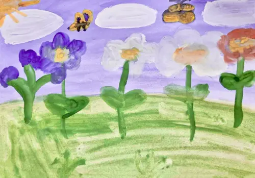 Работа выполнена в акварельной технике. Любимый парк с множеством красивых и ярких цветов, и это все-наш любимый парк Яуза. Ребенок, прогуливаясь по парку, решил изобразить цветы из парка.