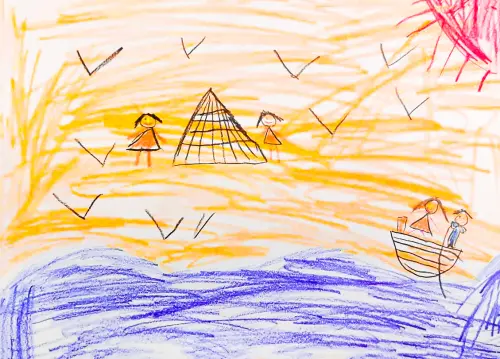 Рисунок «Я ездила на море» отражает впечатления от поездки на море. На рисунке изображено побережье, море, палатка, кораблик, пляж. Через эту работу ребёнок делится своими эмоциями и впечатлениями от увиденного. Море ассоциируется с отдыхом, свободой и новыми открытиями, и рисунок передает своё восхищение и радость от поездки.