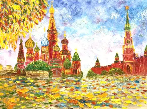 Картина «Красная площадь осенью» передаёт образ одной из главных московских площадей в осенний период. Зритель может увидеть Красную площадь, покрытую опавшей листвой, с характерными для этого времени года красками — золотистыми, багряными и медными оттенками.