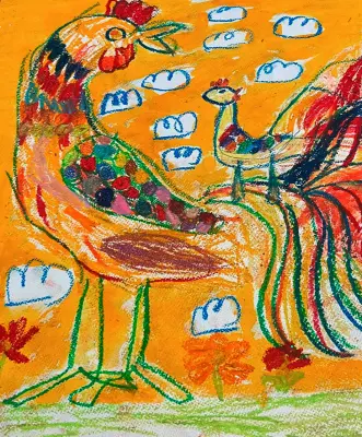 На рисунке изображён петух - животное, которое нечасто встретишь в городской черте. -