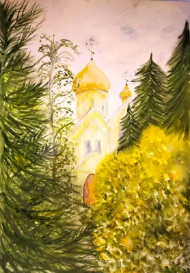 Церковь видна из моего окна, поэтому решила её нарисовать. Очень нравится.