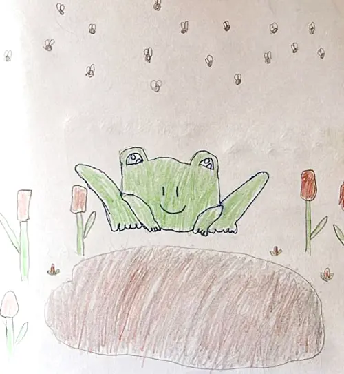 Я люблю свой район, у нас много прудов и речек. Мы с мамой ходили в лес, у нас там пруд, я увидела лягушку, она была такая смешная. Мне она очень понравилась и мне захотелось ее изобразить, она даже была похожа на Царевну-лягушку.