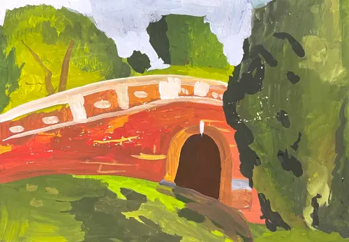 На картине изображен небольшой мостик, находящийся в Царицынском парке-заповеднике. Построен он в готическом стиле во времена императрицы Екатерины II. Предназначался для конных прогулок императрицы.