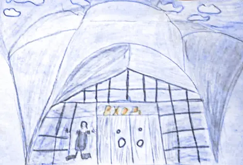 Мой рисунок посвящен Даниловскому рынку, рядом с которым я живу. Даниловский продуктовый рынок, который находится на улице Мытной, 74, а это буквально в паре шагов от станции метро Тульская.