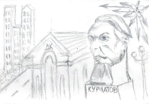 Работа выполнена карандашом на холсте. памятник советскому физику, изобретателю советской атомной бомбы, академику АН СССР Игорю Курчатову. Открытие состоялось 20 сентября 1971 года возле Института атомной энергии его имени. Авторами проекта являются скульптор Иулиан Рукавишников и архитекторы М. И. Богданов и М. Н. Круглов. Памятник имеет статус объекта культурного наследия регионального значения.